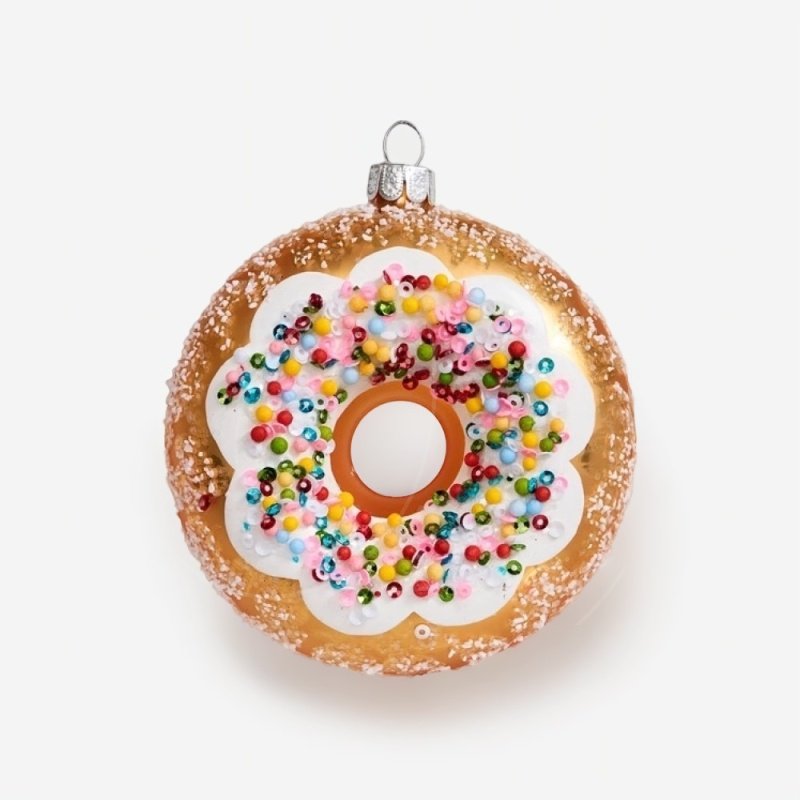 Игрушка ёлочная стеклянная "Пончик карамельный"
