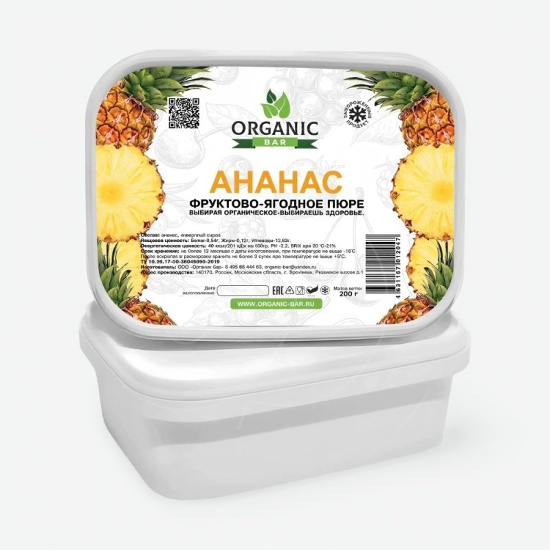 Доставка Пюре замороженное Organic Bar Ананас 200 г из магазина в вашем городе: