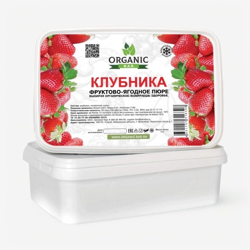 Доставка Пюре замороженное Organic Bar Клубника 1 кг из магазина в вашем городе: