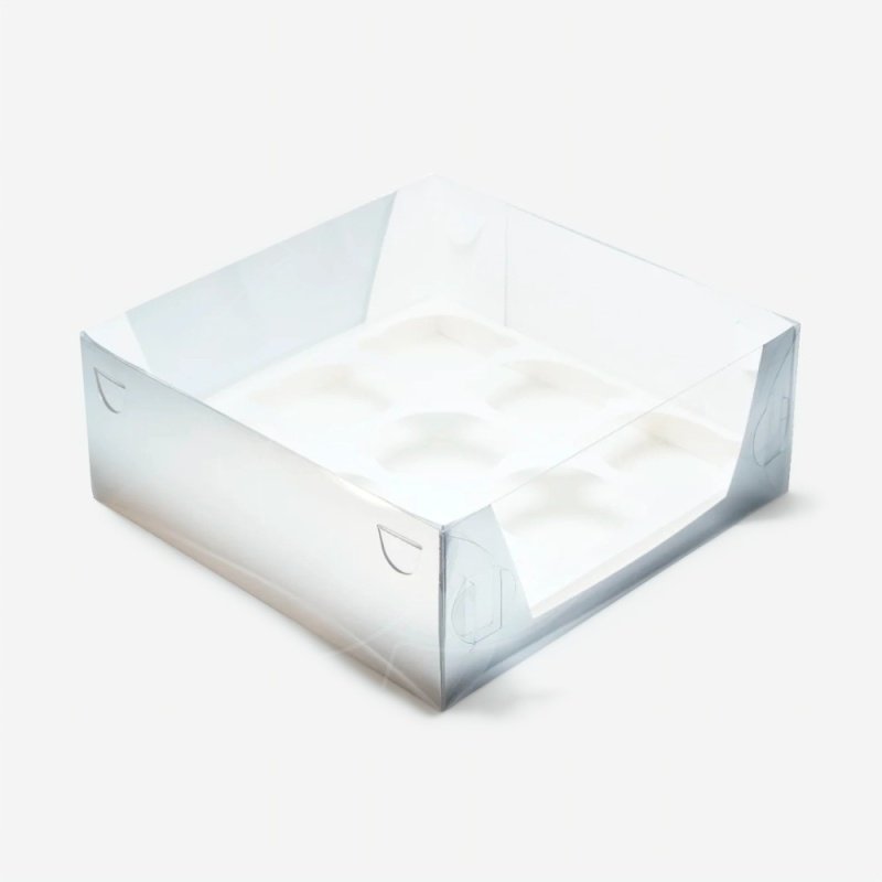 Доставка Коробка на 9 капкейков с прозрачной крышкой Серебро 23,5х23,5х9,5 см из магазина в вашем городе: