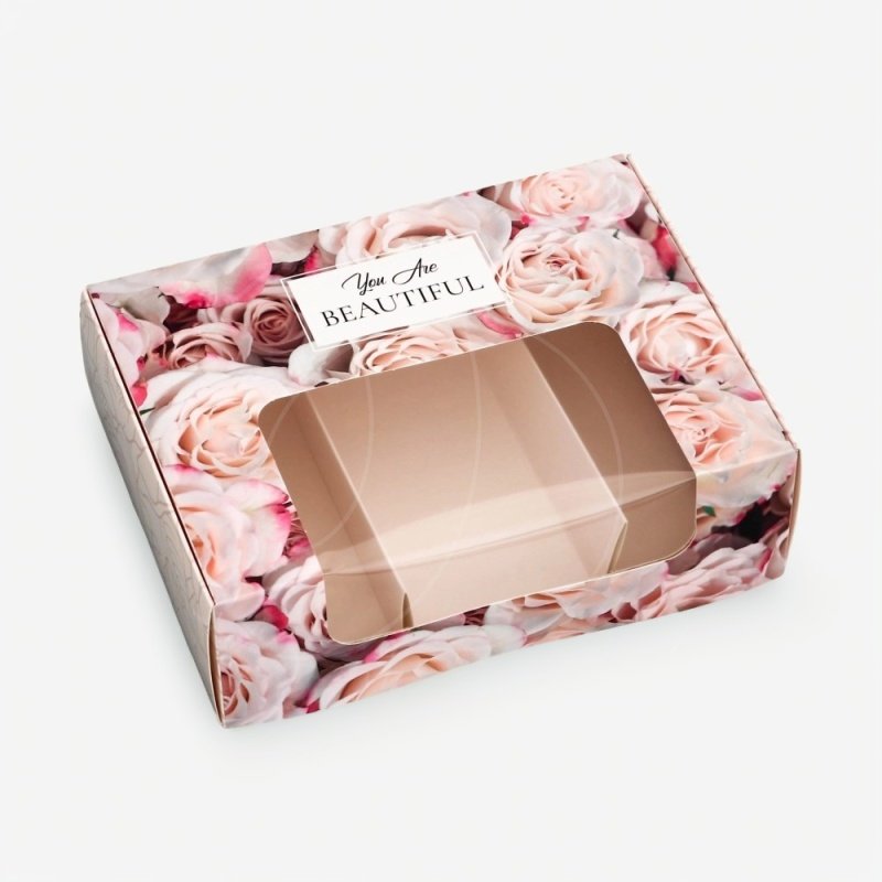 Коробка на 3 эклера и эскимо с окном "Ты прекрасна" 20х15х6 см