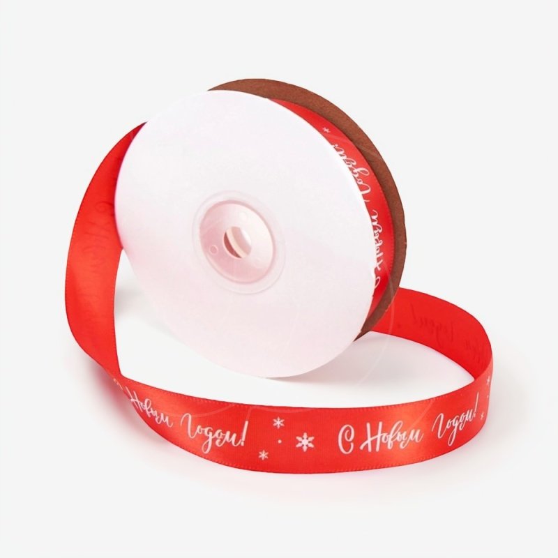 Доставка Лента для декора и упаковки Атласная "С Новым годом" Красная 2,5 см из магазина в вашем городе: