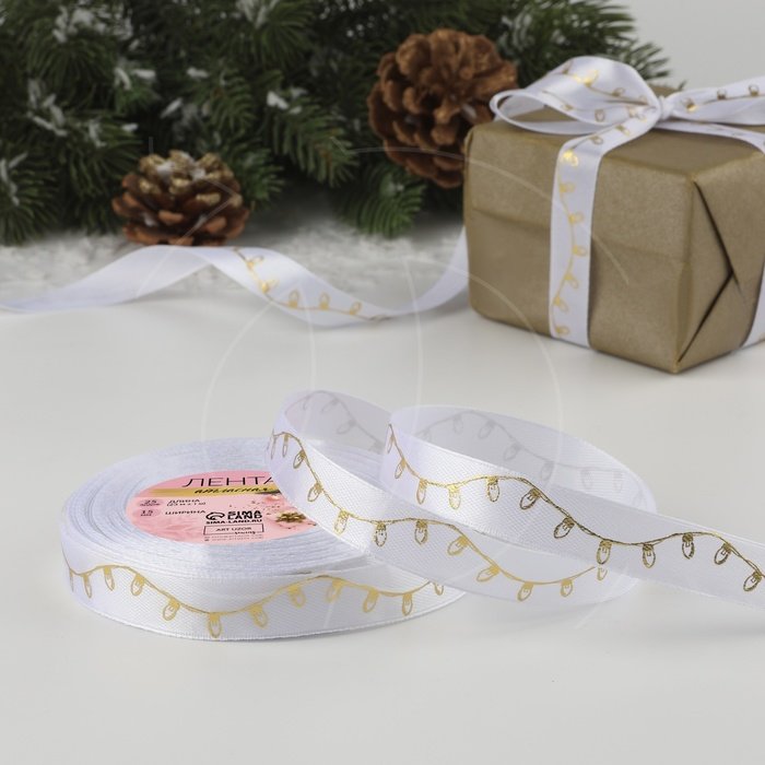 Доставка Лента для декора и упаковки "Новогодняя гирлянда" Белая 1,5 см из магазина в вашем городе: