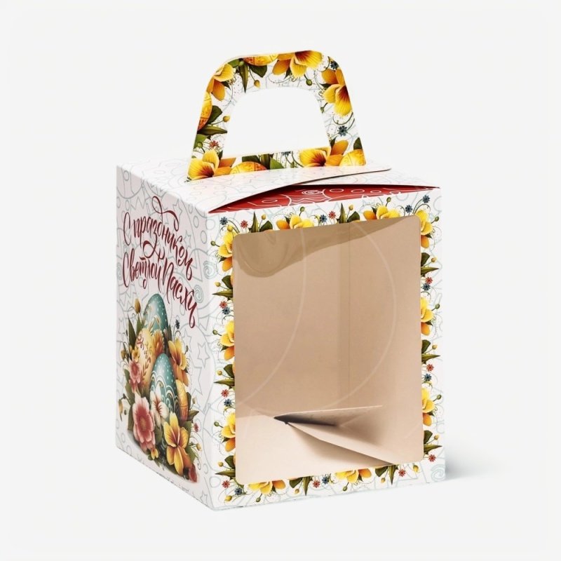 Доставка Коробка для торта/кулича с окном "С праздником Светлой Пасхи" 15х15х18 см из магазина в вашем городе: