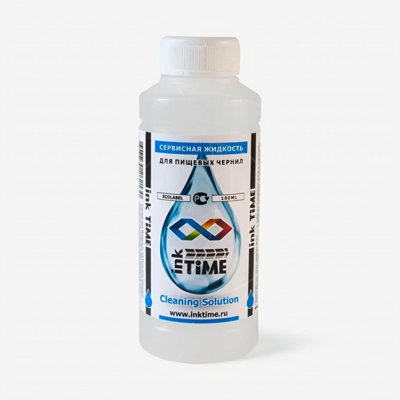 Сервисная жидкость inkTime для пищевых чернил для промывки картриджей и головок струйных принтеров работающих на водорастворимых и пигментных чернилах.