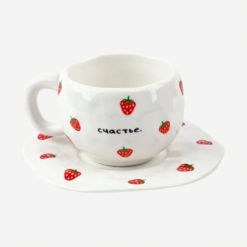 Доставка Набор чашка и блюдце из керамики "Клубнички" 300 мл из магазина в вашем городе: