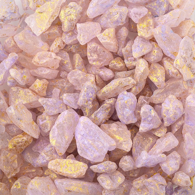 Персиковые сияющие сахарные кристаллики с блеском золота.