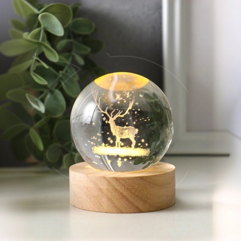 Световая фигурка стеклянная "Шар. Голограмма: Олень и птицы"