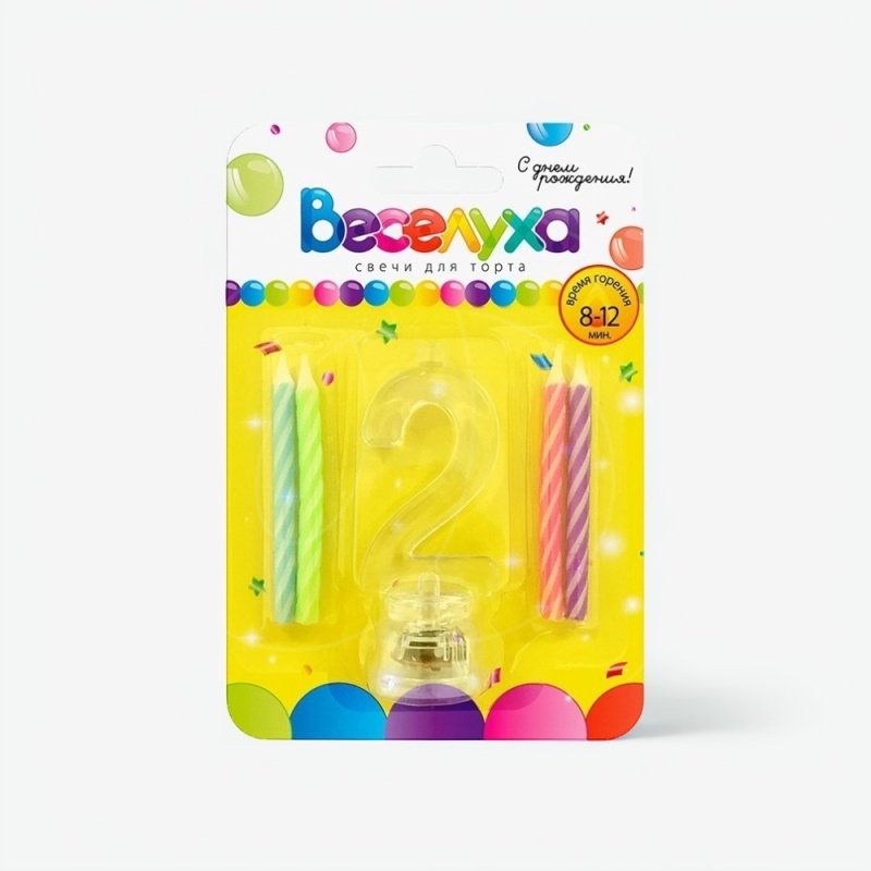 Доставка Набор тортовых классических свечей с мигающим держателем Цифра "2" из магазина в вашем городе:
