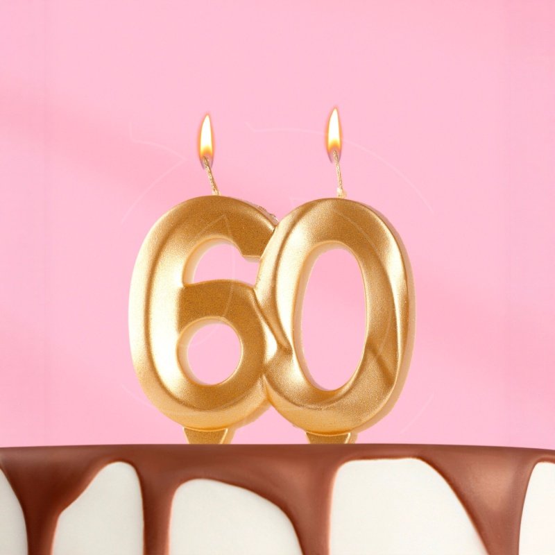 Доставка Свеча декоративная Цифра "60" Золотой металлик из магазина в вашем городе: