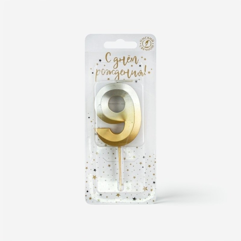Доставка Свеча декоративная Цифра "9" Золото-Серебро из магазина в вашем городе: