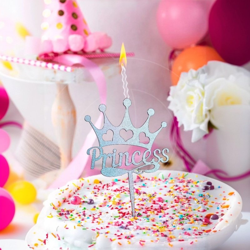 Доставка Свеча-топпер декоративная акриловая "Princess" Серебро из магазина в вашем городе: