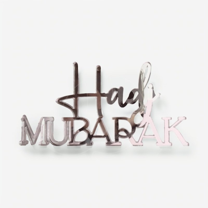 Доставка Топпер декоративный акриловый "Hadj Mubarak" Серебро 14х7,5 см из магазина в вашем городе: