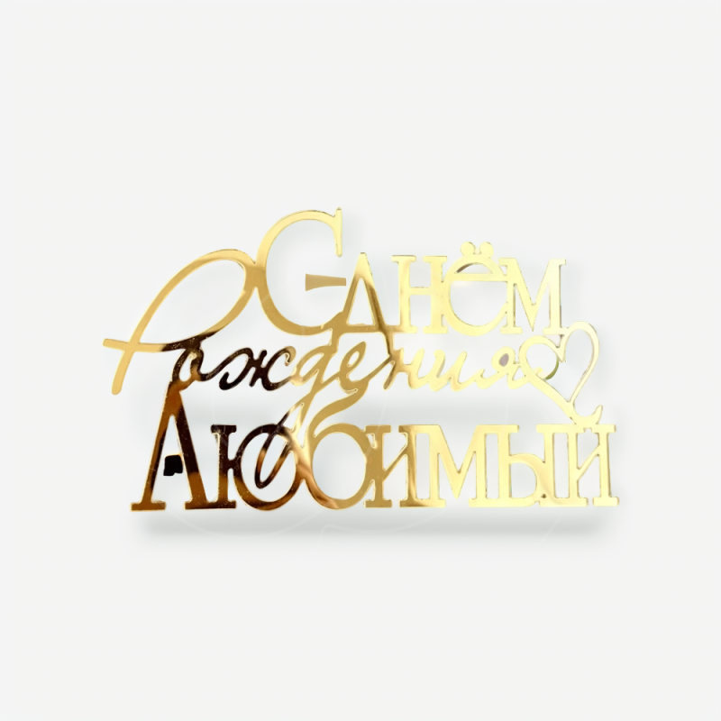 Доставка Топпер декоративный акриловый "С днем рождения, Любимый" Золото 12х7 см из магазина в вашем городе: