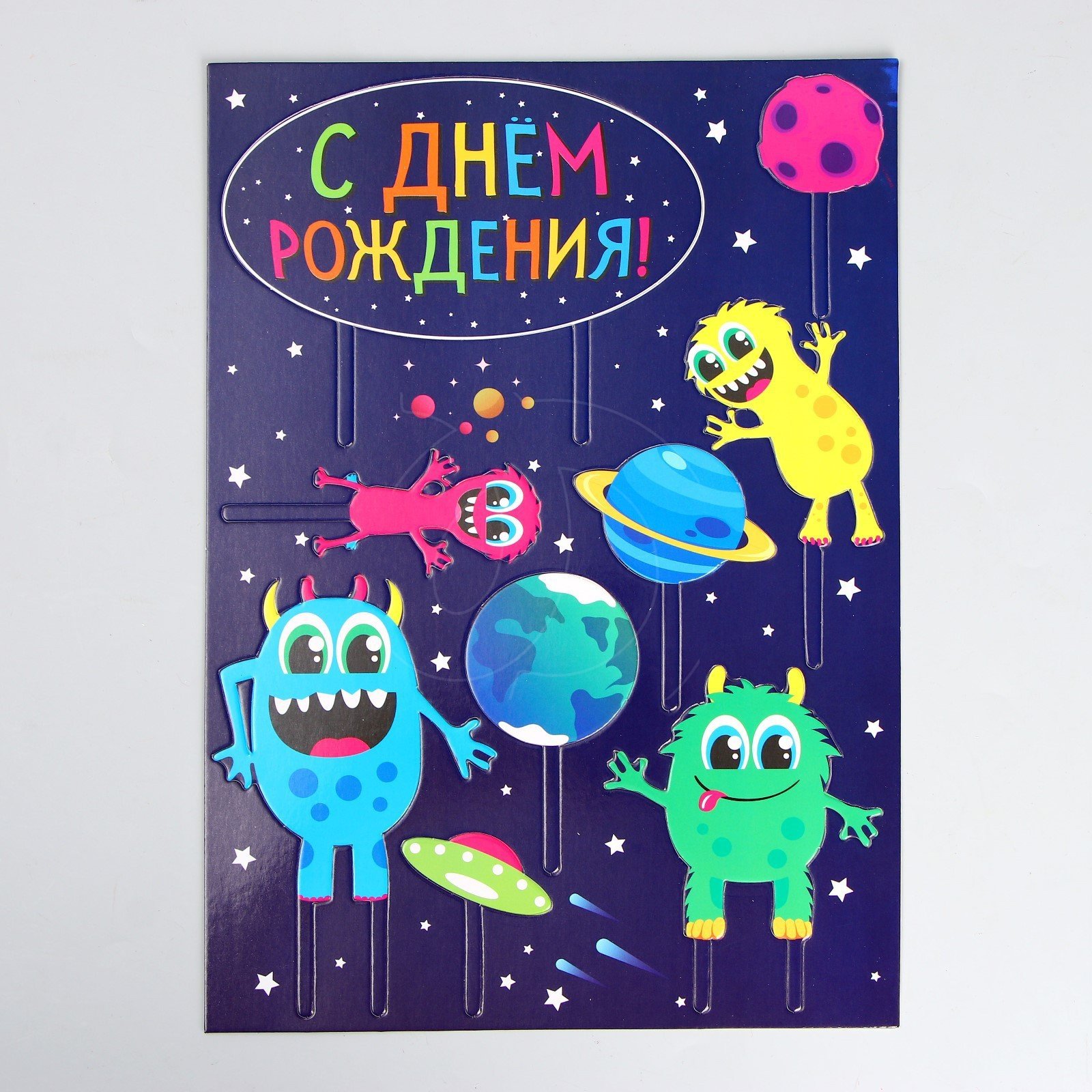 Доставка Топпер декоративный картонный "С Днём Рождения Микс 9 шт" из магазина в вашем городе: