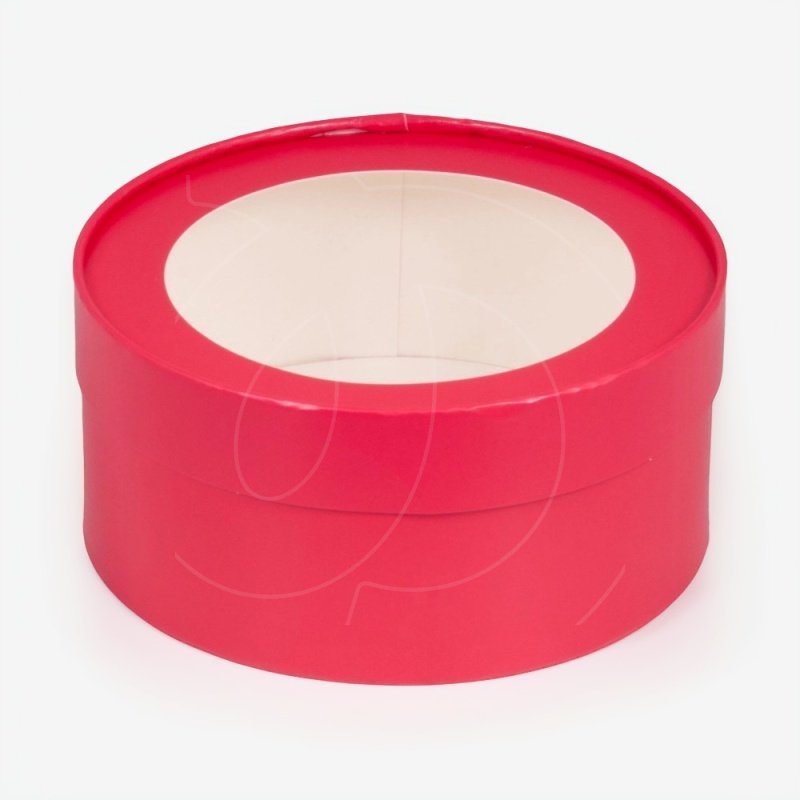 Доставка Коробка для сладостей круглая с окном красная 20х7 см из магазина в вашем городе: