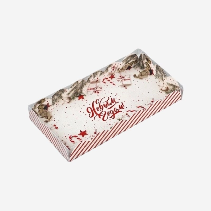 Коробка для сладостей с прозрачной крышкой "С Новым годом!" 10,5х21х3 см