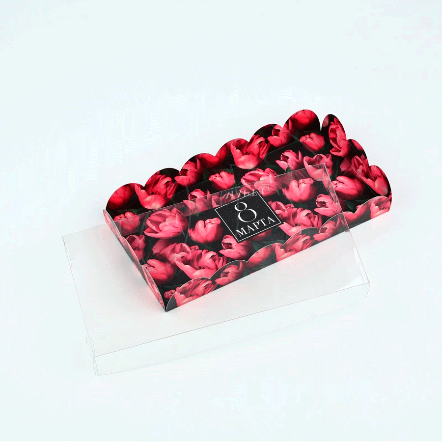 Коробка для сладостей с пластиковой крышкой "8 Марта" 10,5х21х3 см