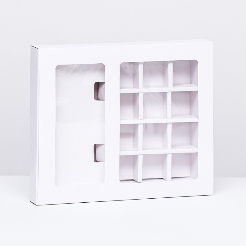 Доставка Коробка на 12 конфет и плитку шоколада с окном белая 23,7х19,9х3,1 см из магазина в вашем городе: