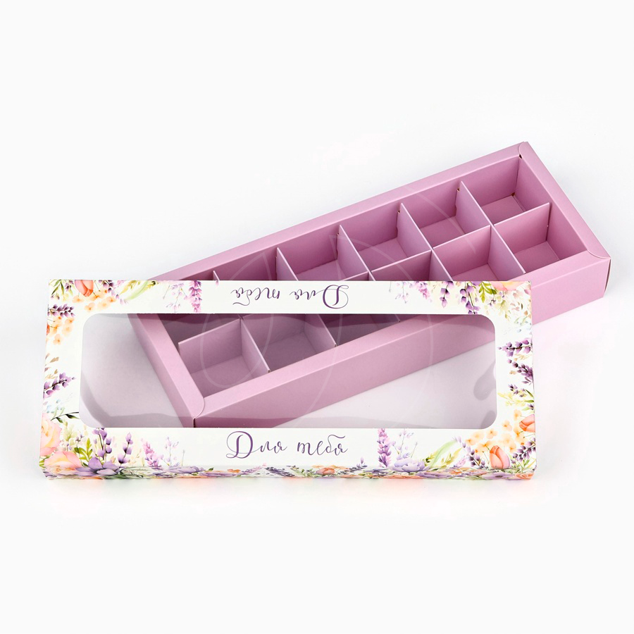 Доставка Коробка на 12 конфет с окном "Для тебя" 26,5х10,5х3,8 см из магазина в вашем городе:
