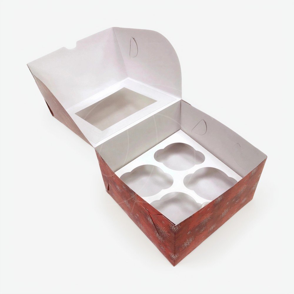 Доставка Коробка на 4 капкейка с окном "Снежинки" 16х16х10 см из магазина в вашем городе: