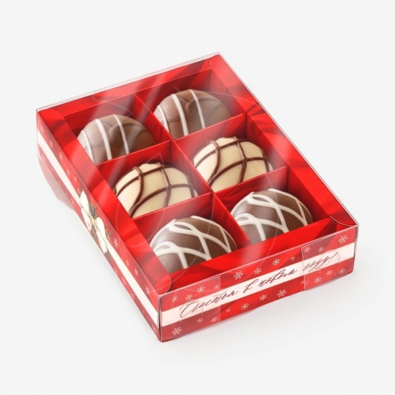 Доставка Коробка на 6 конфет с пластиковой крышкой "Счастья в Новом Году" 10х14,5х3 см из магазина в вашем городе: