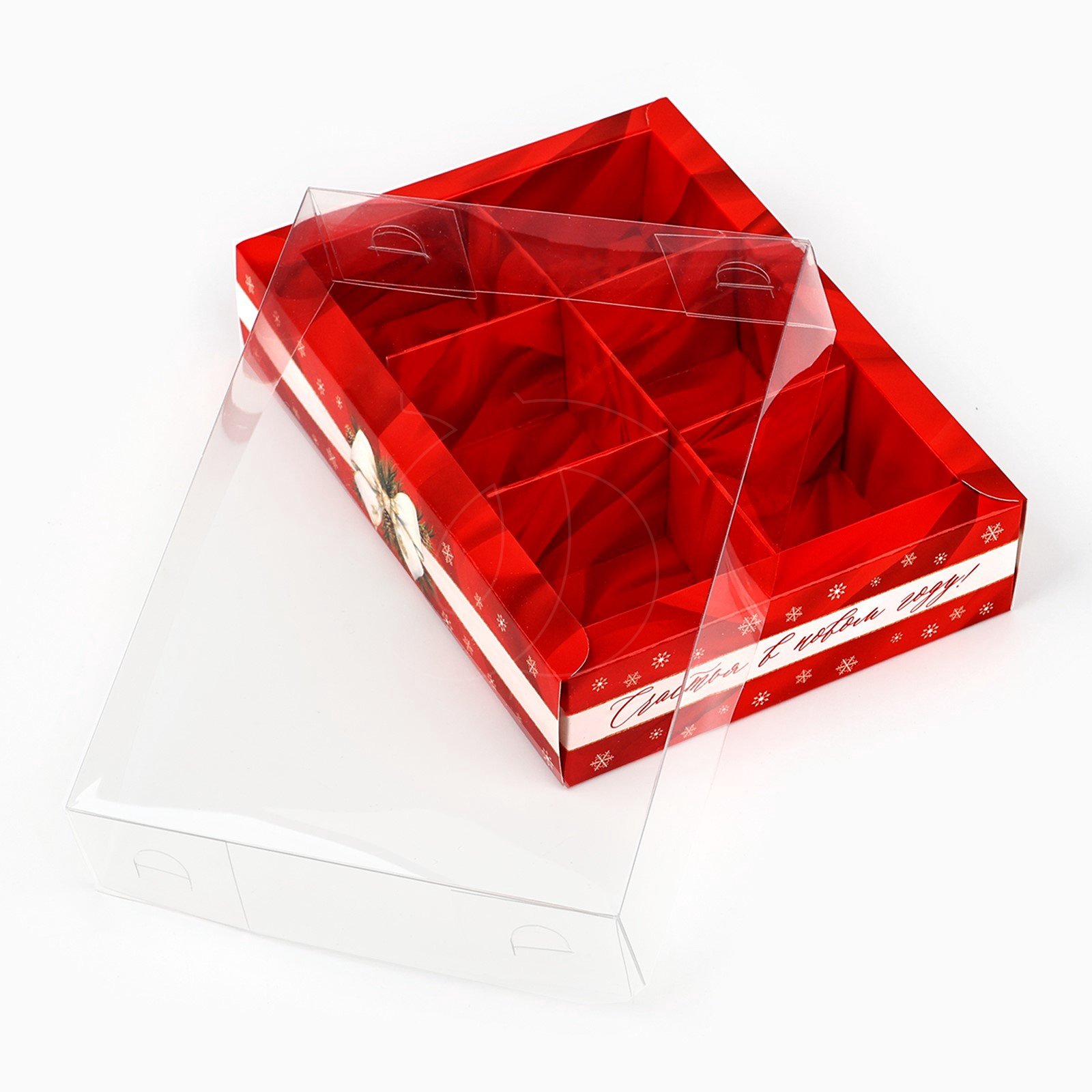 Коробка на 6 конфет с пластиковой крышкой "Счастья в Новом Году" 10х14,5х3 см
