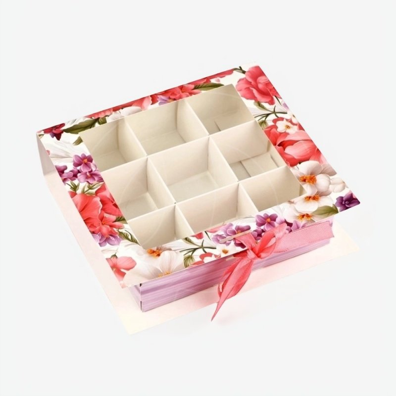 Коробка на 9 конфет с пластиковой крышкой "Самой прекрасной" 14,5х13,5х3,5 см