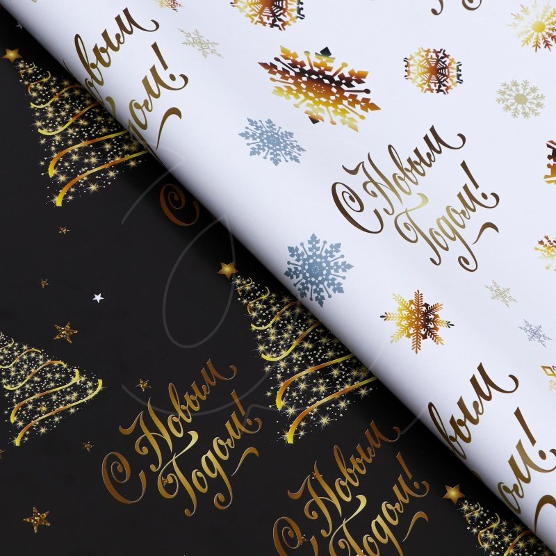 Бумага упаковочная глянцевая двусторонняя "С Новым годом" 50х70 см